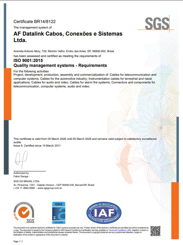 Baixe o Certificado NBR 10300 - Cabos Sinallink